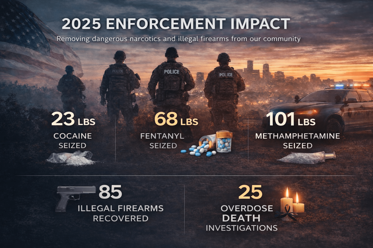 NCDTF works to protect the community by identifying, investigating, and impacting drug-related crime in Larimer County. Participating agencies who make this effort possible are listed below. In 2025, NCDTF’s efforts led to: